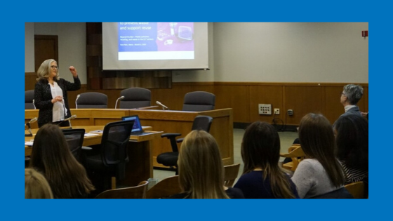 Pam Peck, of Metro regional government spoke on programs and initiatives including RecycleorNot education, repair and reuse events, and other goals to further waste reduction. David Allaway of Oregon DEQ urged attendees to focus on a life-cycle perspective and to consider the total environmental impact of material from start to finish. David Allaway and Pam Peck are both members of the Oregon Recycling Steering Committee, which is working to modernize Oregon’s recycling system.
